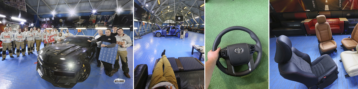 Наши работы по перетяжке салонов кожей не оставит никого равнодушными. На фото сидения Land Cruiser 150 (черное), VW Tiguan (рыжие) и Lexus RX (белое).