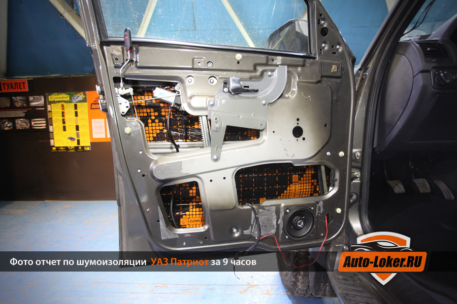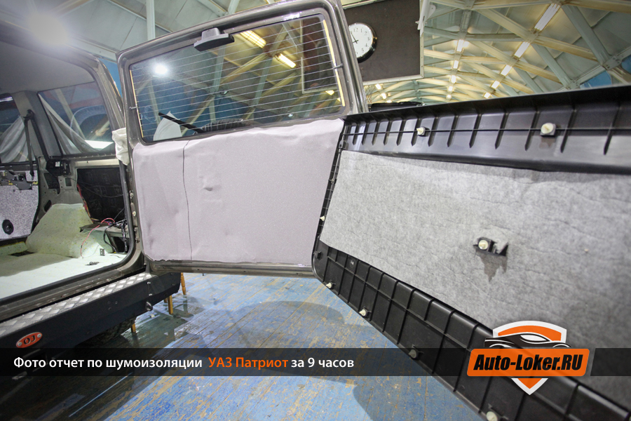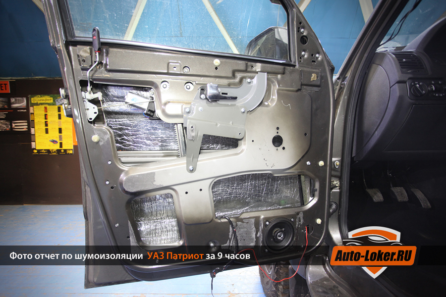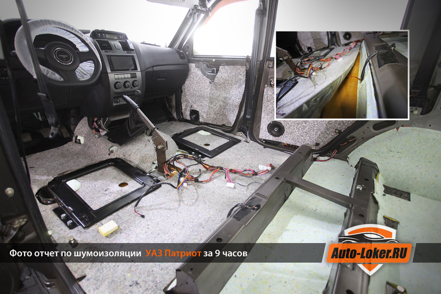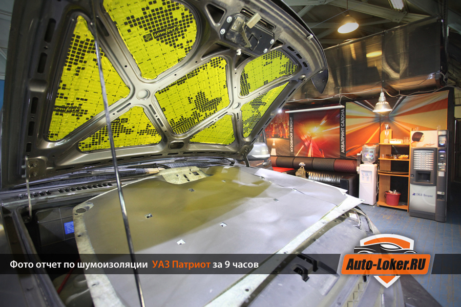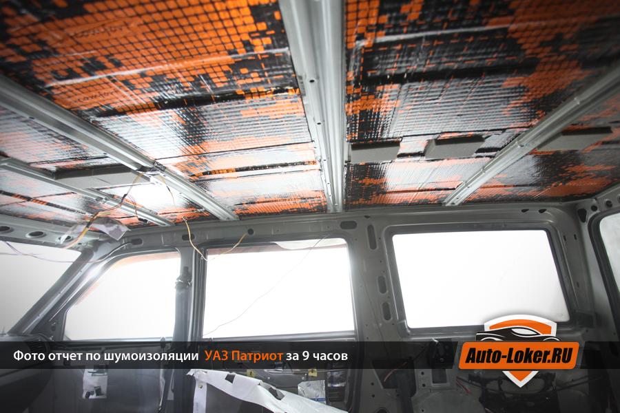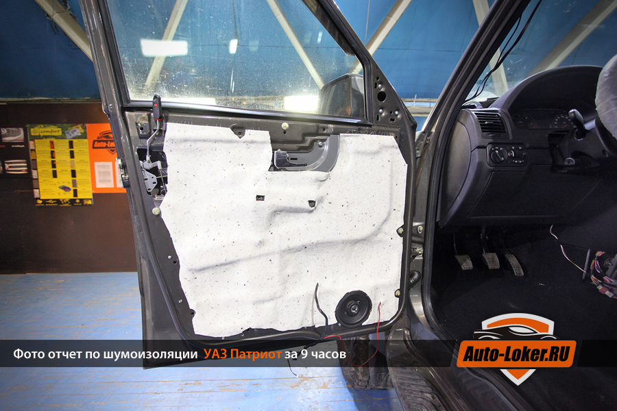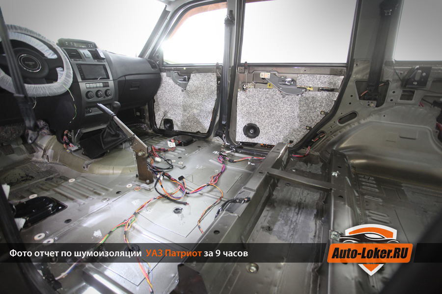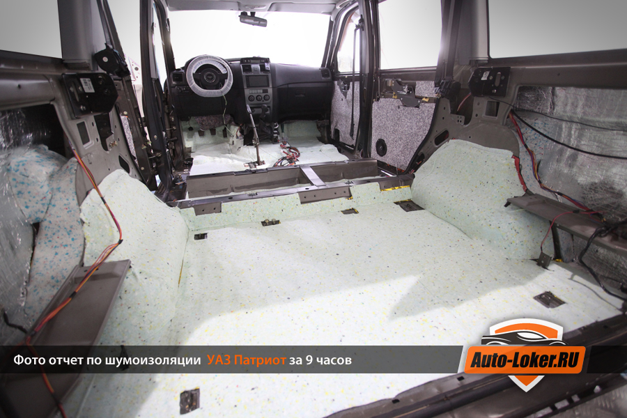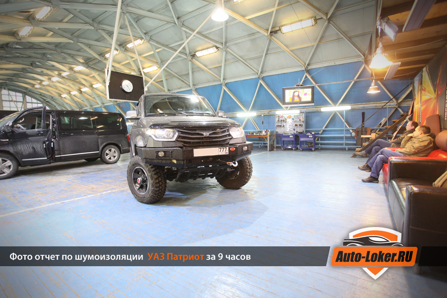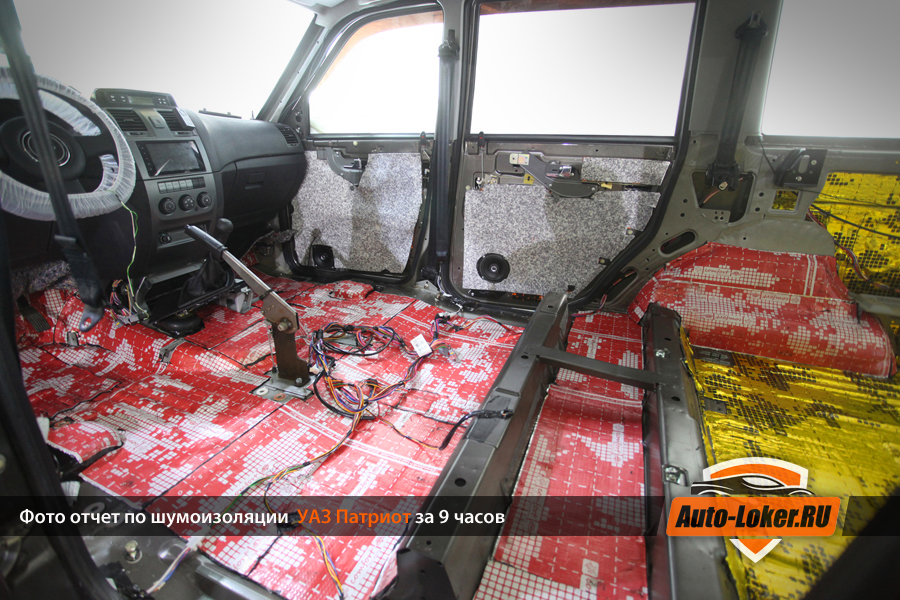 Шумоизоляция автомобиля УАЗ Патриот происходит в стенах нашего спеццентра весьма часто. Купив Патриот, владелец за относительно небольшие деньги получает настоящий большой автомобиль с внушительным внедорожным потенциалом. Если опустить проблему надежности, то одна лишь сторона хромает - это комфорт. Мы систематически получаем жалобы от владельцев Патриотов о том, что автомобиль удручает воем ветра, воем шин, раздаточной коробки, и все это сдобрено скрипом салонного пластика. Мы подготовили специальную программу шумоизоляции UAZ Patriot и в 9-часовой срок на глазах у владельца произведем весь необходимый комплекс работ. Перед приездом каждого автомобиля по записи мы заранее нарезаем весь шумоизоляционный материал по нашим лекалам и размещаем его разогреваться в нашу специальную печку. К тому времени, когда материал нам понадобится, мы просто достанем горячий, равномерно прогретый лист из печки и незамедлительно приступим к монтажу. Да, и не забудьте посмотреть наше видео по шумоизоляции UAZ Patriot. Но, обо всем по порядку.