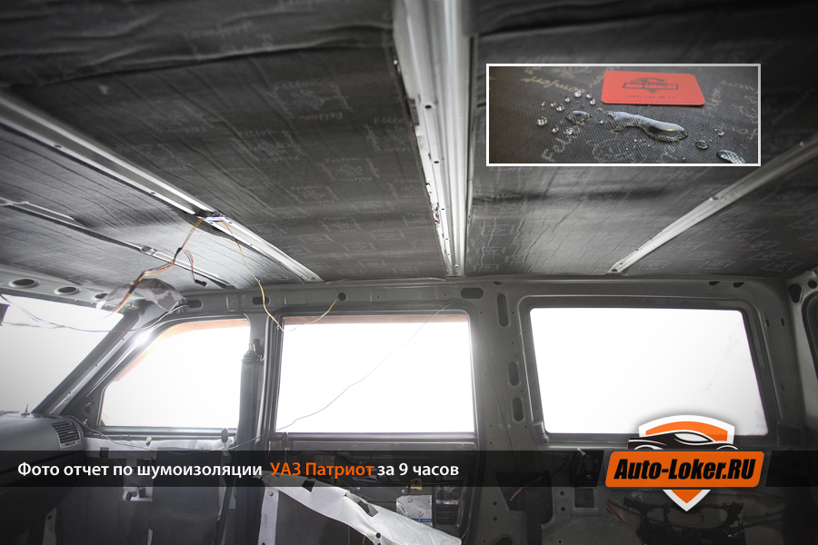 Шумоизоляция UAZ Patriot продолжалась в стенах нашего спеццентра в течение 9 часов. Все это время владелец автомобиля находился рядом с нами и наблюдал все тонкости нашей четкой и слаженной работы. УАЗ в процессе звукоизоляции потяжелел примерно на 60 килограммов самых качественных и эффективных материалов, которыми мы располагаем на момент создания этого фото отчета. После проведения работ ожидается сущесвенное снижения шума от дороги, подвываний трансмиссии, а так же практически полное исчезновение скрипов и дребезга элементов салона. Не забудьте посмотреть наше видео по шумоизоляции УАЗ Патриот.